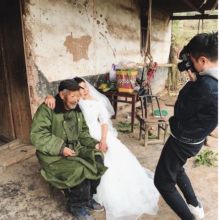 一回到家,罗建就提着婚纱,告诉外婆拍摄计划,老人家很兴奋。“但当时山上很冷,只有十度左右,我怕外婆感冒,舅舅他们也说不要拍,怕外婆感冒了年都过不好。”罗建想了想,对外婆说,他夏天再回来拍,外婆却坚持要拍,“我都是活天数的人了,怕你下次回去看不到我了……”外婆这句话让罗建眼眶湿润了,家人听了也不再阻拦。