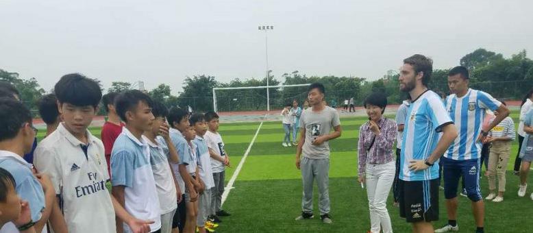 阿根廷足球教练教荣昌学生踢足球