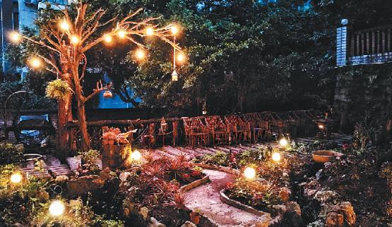 入夜后,行走在一个老式小区里,远远就能瞧见一个闪着光的花园,大门敞开着,进入后就能看到一个巨大的天空之城园丁机器人。当眼前迷雾逐渐退散,潺潺的溪水边,原来是满地水晶和红宝石的光芒,远处还有一条发着光的小径,这并非童话故事的场景,而是重庆80后摄影师“海盗王基德”花了半年时间,将父亲家门前的荒地重新打造而成的。