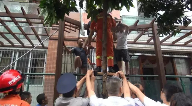 闻声赶来的附近居民见此情况后,立即拨打119电话,请求消防官兵救助。