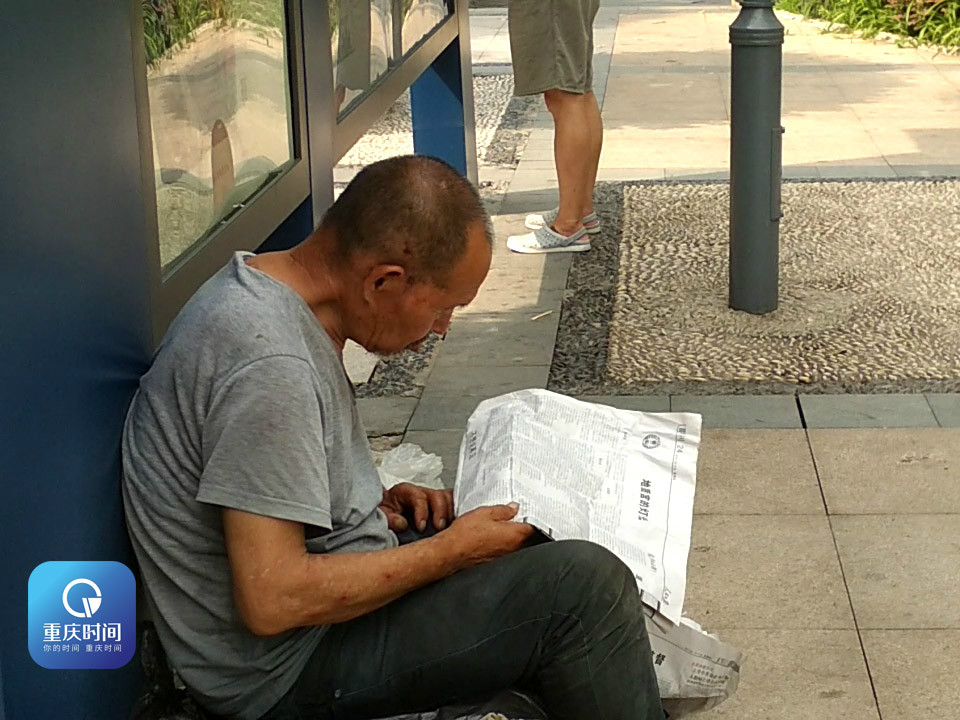 老大爷坐在宣传亭子下,手拿着几张报纸,认认真真地翻看着。正所谓“活到老,学到老”。虽然不能阻止身体上的老化的必然,但是可以让灵魂永远在更新的。