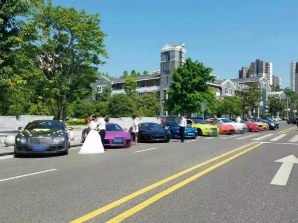 重庆一土豪结婚出动多辆豪车:啥颜色都有