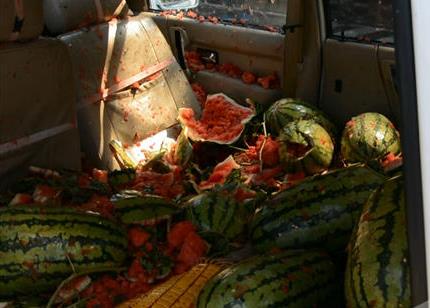 虽然,红车车内的5人与白车内的驾驶员都不同程度受伤,已被送往医院治疗。但是,白车内部存放着多个西瓜,大多破损,一部分滚到了路面上,同时事故路段流淌着汽油,给过往车辆造成了不小的安全隐患。