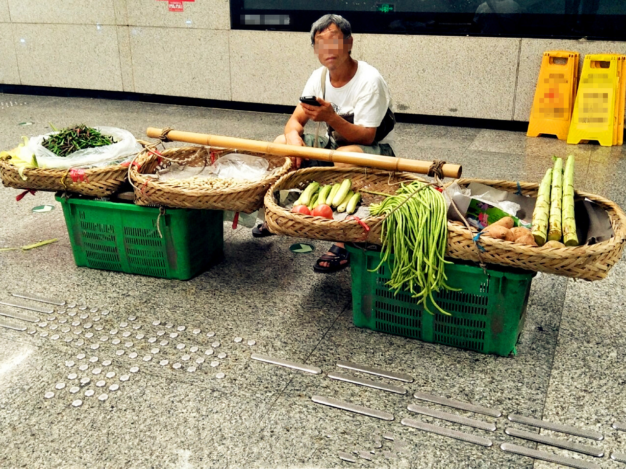 大伯轨交站内摆菜摊卖菜 网友:这怕要不得哦