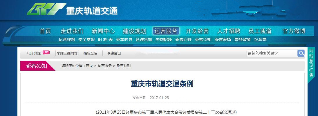 据悉,重庆市轨道交通条例第三章第三十七条规定: