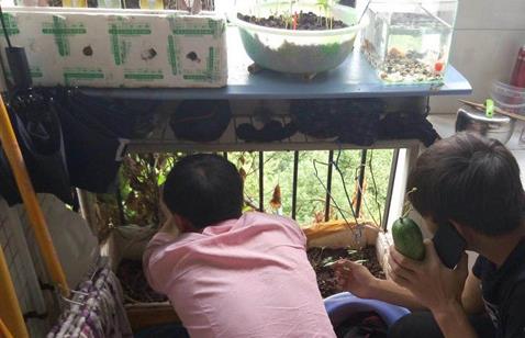 桌子总是摆得满满当当,泡沫箱子、盆栽,还有一缸金鱼,小小的阳台被他们布置得颇富田园风情。李洪旭告诉记者,“这个阳台还出现过葱、蒜、香菜的身影。”在种菜这个事儿上,他们宿舍从来不缺探索精神,唯一担心的是学校不同意他们的行为。对此,记者电话咨询了该校后勤处,对方表示,“虽然种菜奇葩了一点,但只要不影响学校的宿舍管理工作,和室友协调好,不给其他人带来干扰,都是没问题的。”