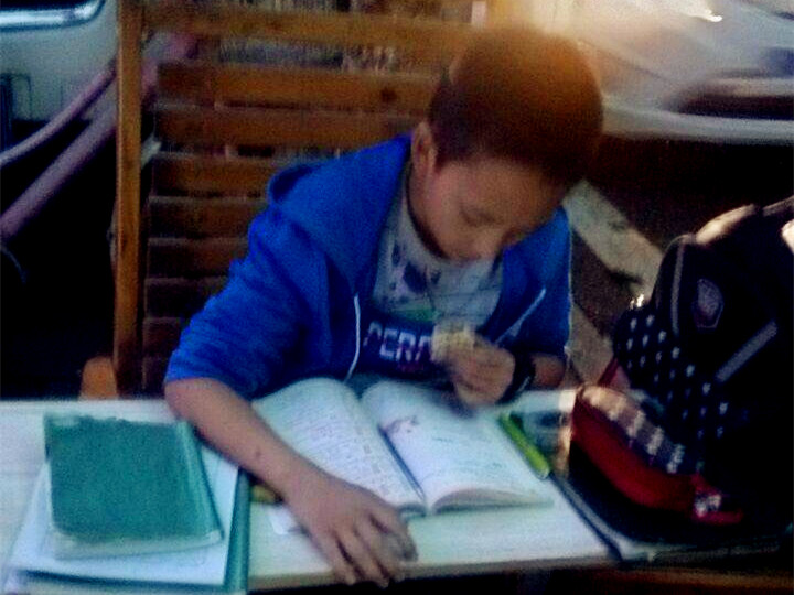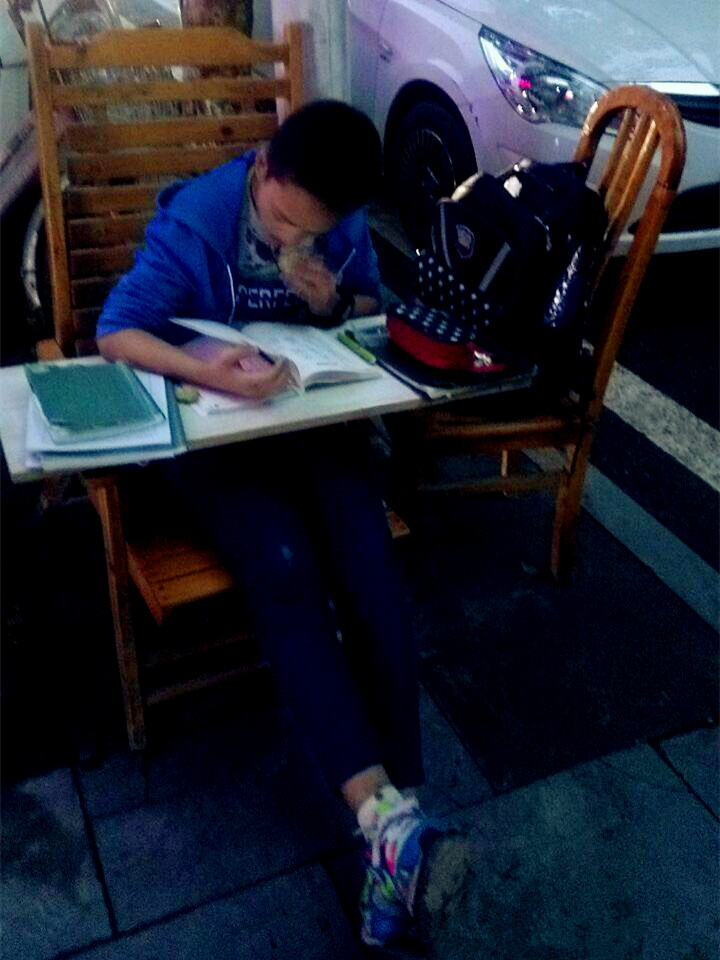 黄女士说,虽然条件艰苦了些,但感觉这男孩也不在意这些问题,而是全神贯注地做着自己的作业。