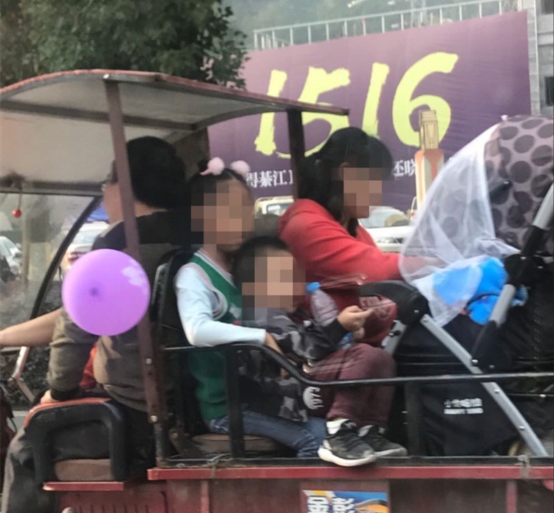 重庆时间提醒:不论驾驶什么车型,都不允许出现超载现象。超载驾驶不仅存在安全隐患,也容易引发安全事故。像这辆三轮车上,不仅有小孩还有婴儿,如果出现意外,后果就不堪设想。
