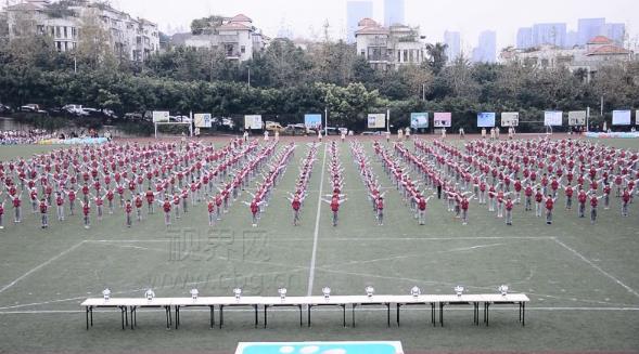 今日(17号)上午,重庆为明学校举行了科技节启动仪式,在活动现场,学生们除了表演常规的节目之外,还上演了一场“人机共舞”的精彩场面。在学校操场上,来自为明学校五年级的数百名小学生们正在跳舞,而站在前方给他们领舞的则是10位跟筷子一样高的机器人。
