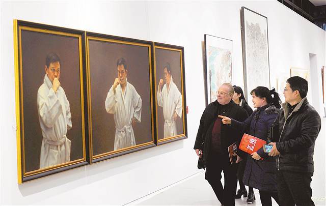 记者在展览现场看到,国画家周顺恺创作的《杜甫》展现了饱经风霜的诗人形象;庞茂琨的《子夜》是其《镜像》系列中的三幅作品,是艺术家的自画像;80后艺术家唐德福的国画《春喜巴山》则以10米的长卷表现了巴渝乡村的新貌……