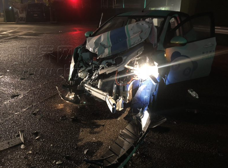 只因为接了个电话 小轿车被撞成碎渣
