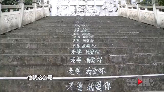 两百步台阶的爱情宣言,可以想象花了多少时间和精力,但与其对着台阶写字,不如用心回头对着真人,去经营一下自己的感情,毕竟,至尊宝嘴里的爱你一万年,最终也没能唤回紫霞仙子。