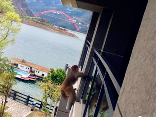 网友带着好奇心,走到阳台处,发现竟是一只“美猴王”,不知是迷路还是怎么的,跑到酒店客房阳台上来了,姿态呆萌十分搞笑。