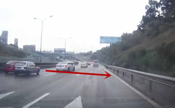 据爆料网友介绍,当时自己正行驶在内环高速公路上,一辆白色轿车突然横跨三个车道并道,进入最右边车道。