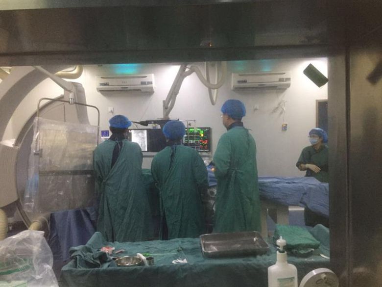 患者95岁的焦大爷被送到医院时,表现为胸痛、大汗,血压只有80/50mmHg,心率40次/分,心电图检查提示大面积心肌梗死,冠脉造影检查显示左冠状动脉前降支慢性闭塞,右冠状动脉急性闭塞,若不开通急性闭塞的右冠状动脉,存活率极低。李勇说,当时老人情况非常危险,手术风险很高,如果不做,病人肯定就过去了,老爷子心脏上的血管已经闭掉了,必须尽快疏通,让他先健康的活下来。