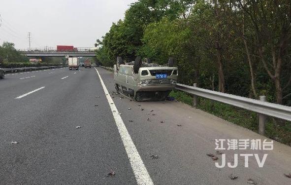 发布时间:2018-04-11 17:31:53来自江津手机台的消息:4月10日,绕城高速外线双福南与双福北之间395KM处发生一起交通事故,一辆面包车四轮朝天翻在了高速路的应急车道内,车内装载的货物散落一地。幸好驾驶员处置得当,车上人员均未受伤,由于其翻车的位置正好在右侧应急车道内,也未对车辆通行造成影响。