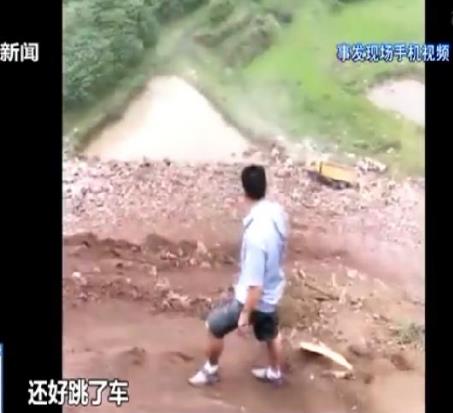 这是车辆滚下山谷后,货车驾驶员上来的场景。