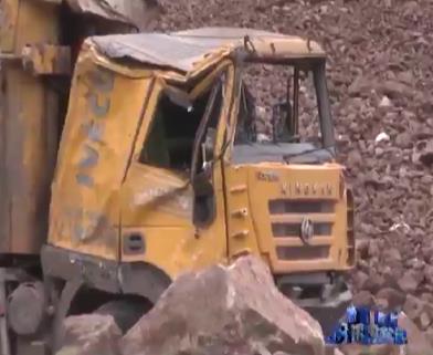 据了解,事情发生在下午2点多钟。事发现场是一处堆放弃土的垃圾场,这辆货车掉落在这个垃圾山的底部,货车驾驶室已经严重变形。