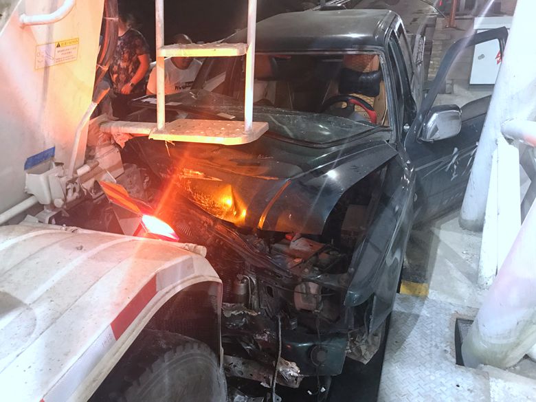皮卡刹车失灵 追尾罐车