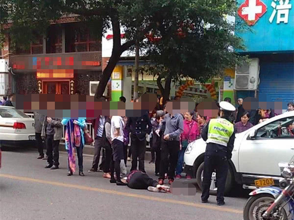 爆料网友介绍,事发地点正是公交车站台旁的马路上,当时道路上车水马龙,“噗通”一声,老太倒在了血泊中。
