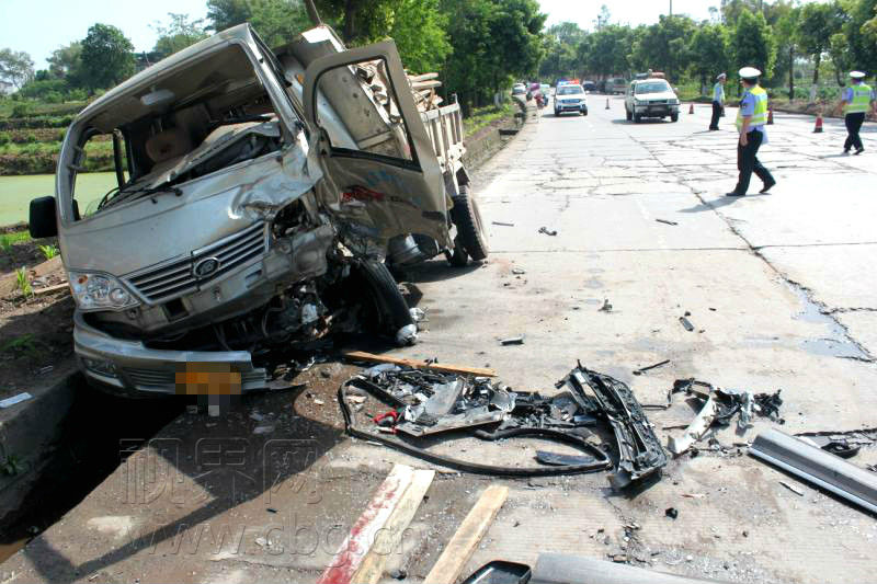 事故发生在中午两点多钟,当时熊某驾驶一辆SUV沿省道207线从肖家朝龙市方向行驶,当行至省道207线11公里处时,熊某的SUV突然像脱缰的野马失去控制,越过道路中心线与对向车道一辆从龙市朝肖家方向行驶的小货车发生猛烈碰撞,事故导致两车车头严重受损,SUV车上的安全气囊全部弹出,一只轮胎也滚落一旁;而小货车更是被这股突出其来的巨大冲力撞到了路边的水沟,驾驶员满脸是血,胸部及以下被卡在小车里动弹不得。
