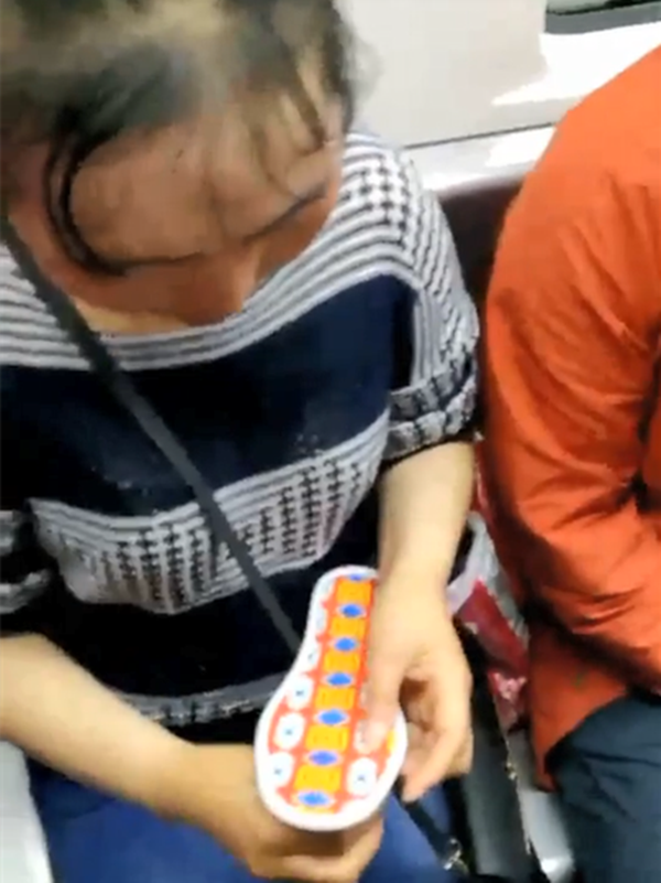 女子早高峰在车厢内缝鞋垫 乘客很担忧