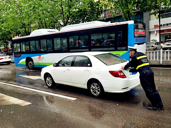 在民警的帮助下,王某汽车被推至路边安全地段,交通迅速恢复畅通。