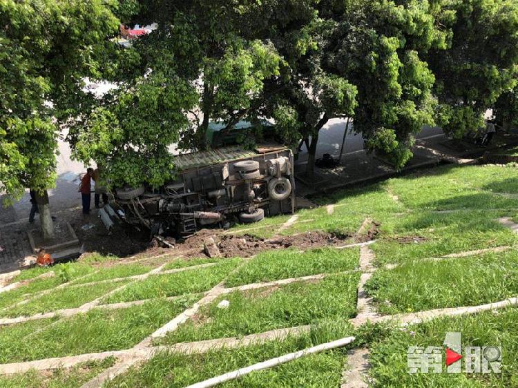 货车翻下十几米高堡坎 驾驶员从驾驶室爬出