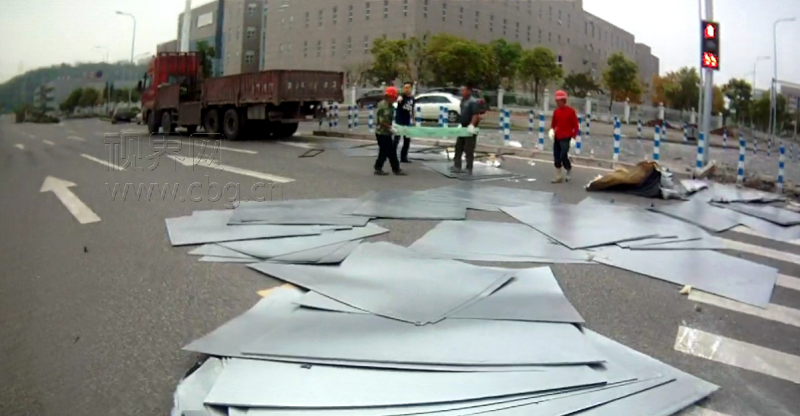 民警及时赶到现场,只见满地都是钢板,急忙疏导过往车辆绕行,以免引发二次事故。重货驾驶员罗某称,车上装载的是小车发动机罩机外板。由于货物没有固定好,车辆在转弯过程中重心偏移,钢板撞开货箱栏板脱离车厢,摔落一地。所幸的是当时没有车辆经过,否则被钢板砸到,后果不堪设想。
