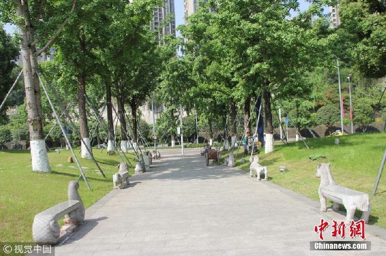 中新网消息,2018年4月16日,重庆,生肖作为悠久的民俗文化符号,古往今来留下了大量描绘生肖形象和象征意义的民间工艺作品。在重庆九龙外滩看到,一条长约20米的步道两侧,放着12个石凳供市民休憩,一边6个,十分均匀整齐。