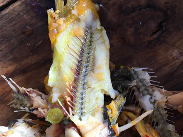只见这鱼刺与鱼肉两者相间呈现黄绿色,让人无法下咽,这到底是怎么一回事,爆料网友无从知晓。于是将照片拍下来,发到当地社交平台后,引起大家的热议。有网友分析说“有臭煤油味道,是鱼贩在养鱼的水里加了煤油的,这样鱼不容易死”、还有的网友评论说:“有臭味的黄辣丁可能是养鱼的水被污染了”。