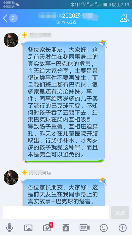 聊天群里,大家都为孩子的遭遇表示同情,并表示会回家去教育自己的孩子。