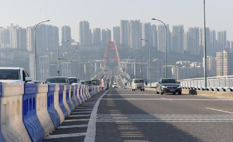 当日,重庆开通全国首创环道内顺逆融合车道,不仅是向时间、空间要通行率,也是在环道形成的“顺时针”和“逆时针”两种通行方式,共同存在的“共享位移转换道”基础上提高车流量通行率。
