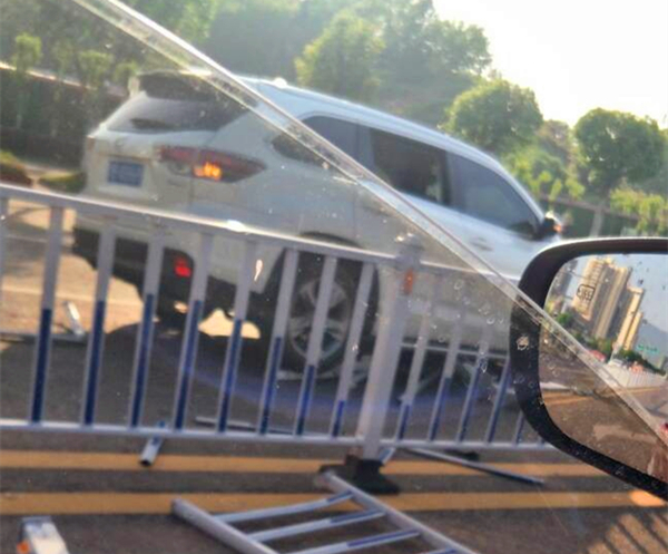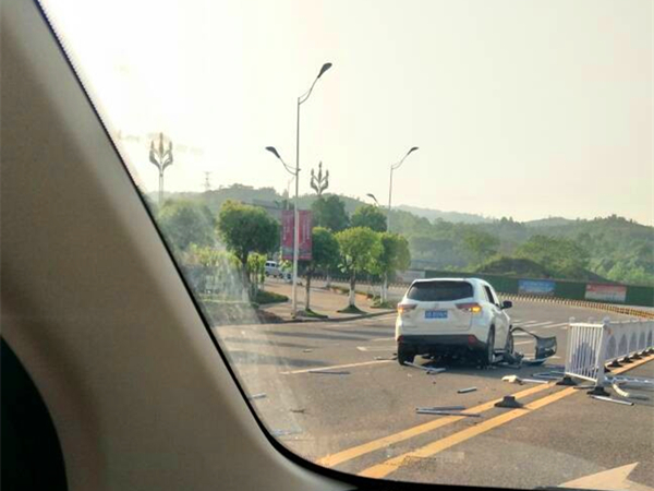 越野车“轰碎”十余米隔离护栏 直冲对面车道