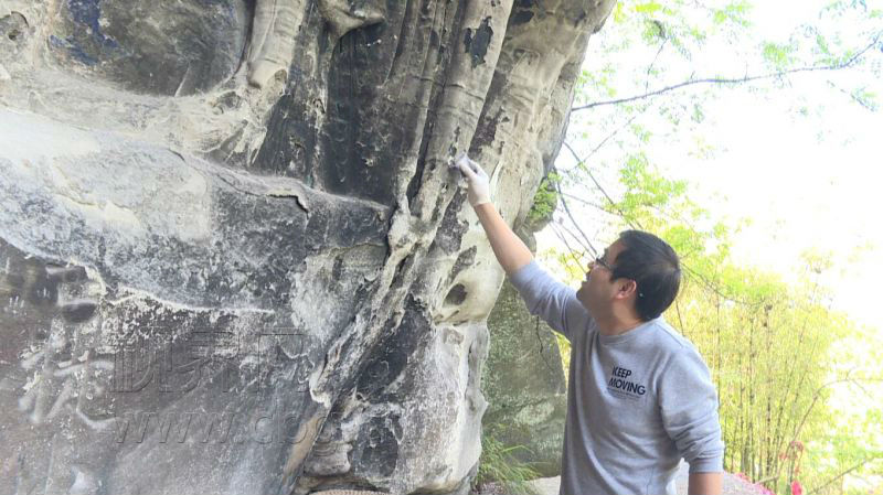 来自视界网的消息:石刻油烟污染,一般是由香蜡燃烧产生的油烟聚集在文物表面而形成的,是石质文物最为常见的病害之一,具有成分复杂和附着牢固的特点,一直是文物清洗中的难点问题。眼下大足石刻研究院文保专家通过5年时间的探索实验,成功研制出了石质文物油烟凝胶清洗剂,取代传统技术,而这一技术更像是文保专家为石刻量身打造的“去油面膜”。