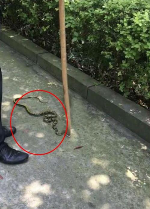 1米长的菜花蛇校内出没 吓坏路过的学生