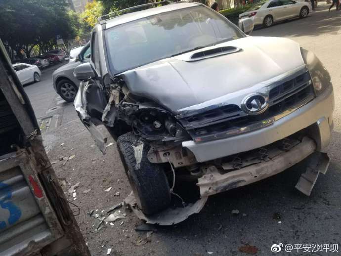 来自平安沙坪坝官微的消息:4月17日,李某驾驶小货车行至都市花园中路时,因占道左转撞向后方直行而来的越野车,把越野车撞得面目全非,造成交通严重堵塞。
