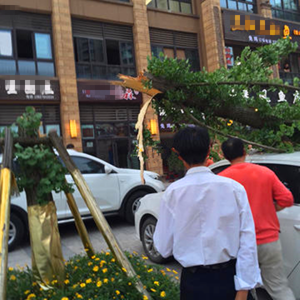 街头上演“车遭殃” 私家车被大树砸“绿”了