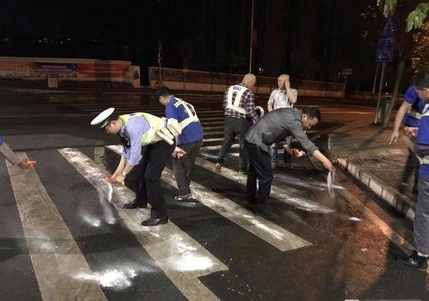 随后,民警一边将情况上报区局指挥中心、协调联系市政部门,一边在被污染区域沿线设置执勤卡点,提醒过往车辆尤其是摩托车、电动车减速、绕行。