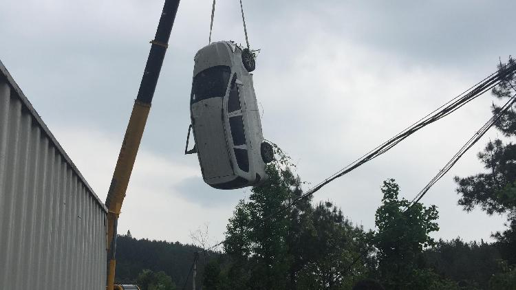 当时,一辆越野车从武隆双河镇朝武隆城区方向行驶,当行至武隆区土坎镇地段时,突然失控冲出公路,翻滚到右边数十米高的坎下。目击者介绍称,当时车上只有司机一人,他是在去开家长会途中出的事,所幸的是他只受了点轻伤。后来,该越野车被吊车从坎下吊了起来。