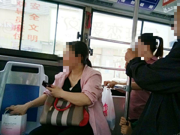 画面中这位穿着艳丽的时尚女子,看上去大约35岁左右,一只手握着手机,注视着前方;另一只手拿着口袋放在座位上,而自己的包包则放在膝盖上,一身轻松。而此时,车内还有很多乘客站着,女子对面站着的老爷爷,扶着柱子。但这一切女子并未看在眼中,好在周围乘客及时提醒她,才腾出位置让老爷爷坐下。