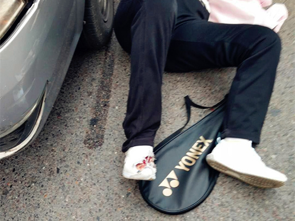 女子被车撞伤 倒地不起忍痛“玩”手机