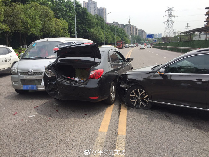 来自平安九龙坡官微的消息:近日,九龙坡新区大道两辆小轿车和一辆面包车横在路中间,车辆均受损严重。民警唐志强调查发现,黑色现代小车驾驶员黄某在走错路后不想绕路,便无视道路中间双黄线违规调头,导致对向正常行驶的大众小轿车及面包车来不及避让与其相撞,所幸无人员受伤。