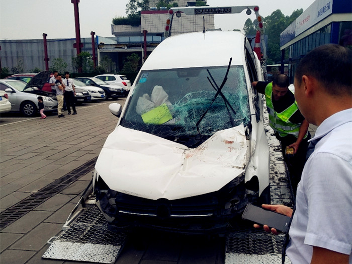 随后,事故车辆被从现场转移到了汽修厂,对车辆状况进行了检测。