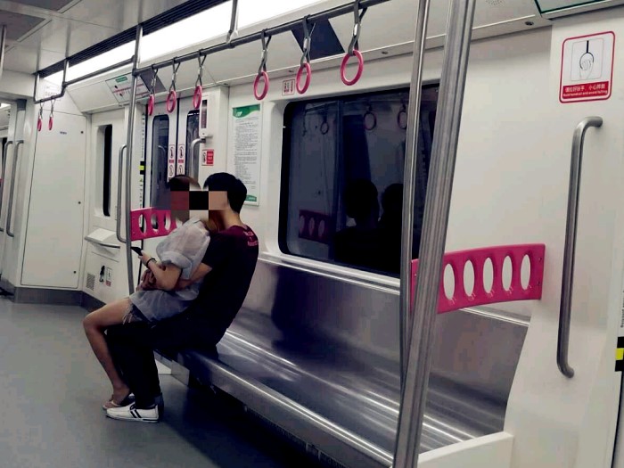 情侣车厢内秀恩爱 坐姿浮夸令乘客反感