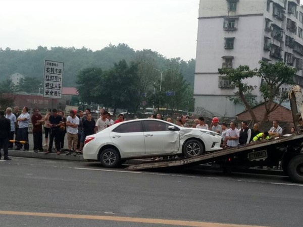 发布时间:2018-06-12 13:12:332018年6月12日,有重庆垫江的市民,在北转盘附近,目睹了一起惊心动魄的交通事故 ,一辆出租车与一辆白色小车相撞,随后,白色小车被挤到防护栏上,将防护栏连根拔起。