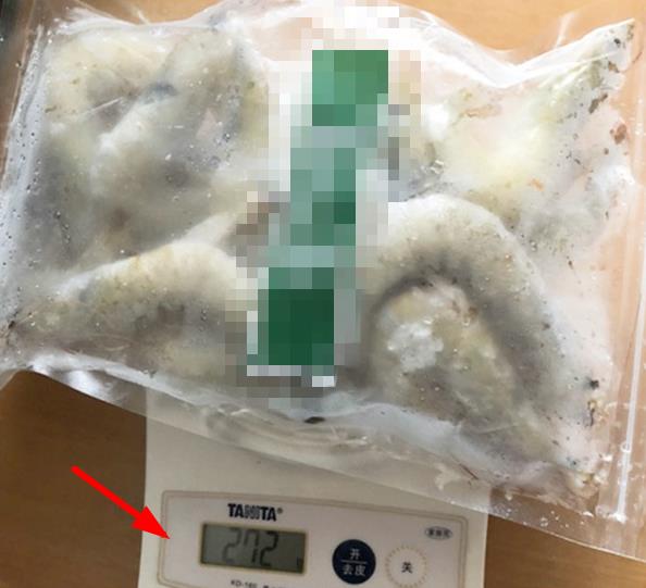 随后爆料市民将这次的冻虾与之前的作了对比,发现分量大不如前,便用家中的电子称一称,显示重量为272克。