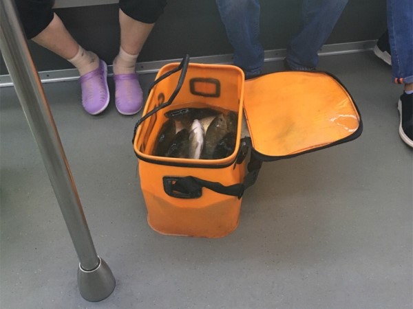 身边的乘客像看到稀奇古怪一样,露出了十分诧异的表情,同时也表示很疑惑,能带鱼做轻轨吗?