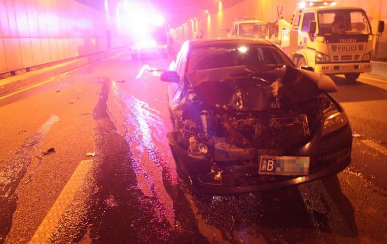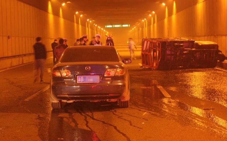 驾车时伸手捡手机 隧道里追尾致翻车起火