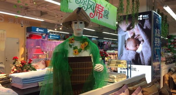 重庆超市“大妈”又出神作 模特穿凉席画风清凉